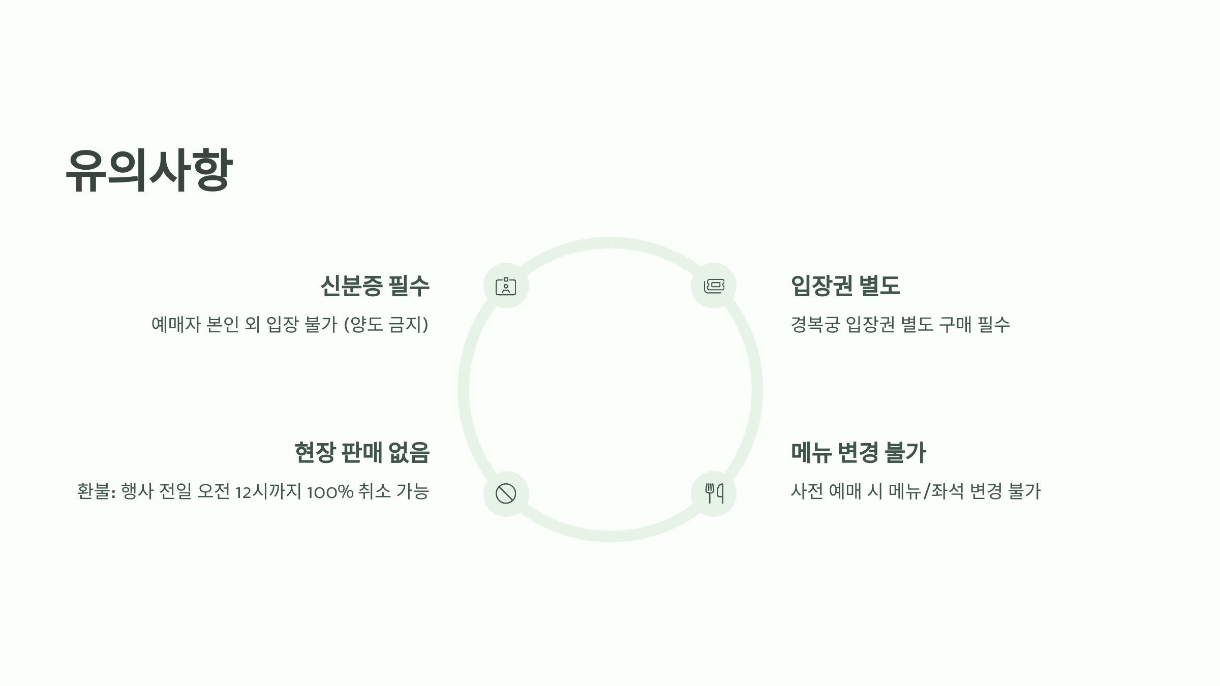 - 경복궁 입장권 별도 구매 필수 (생과방 요금에 포함되지 않음)