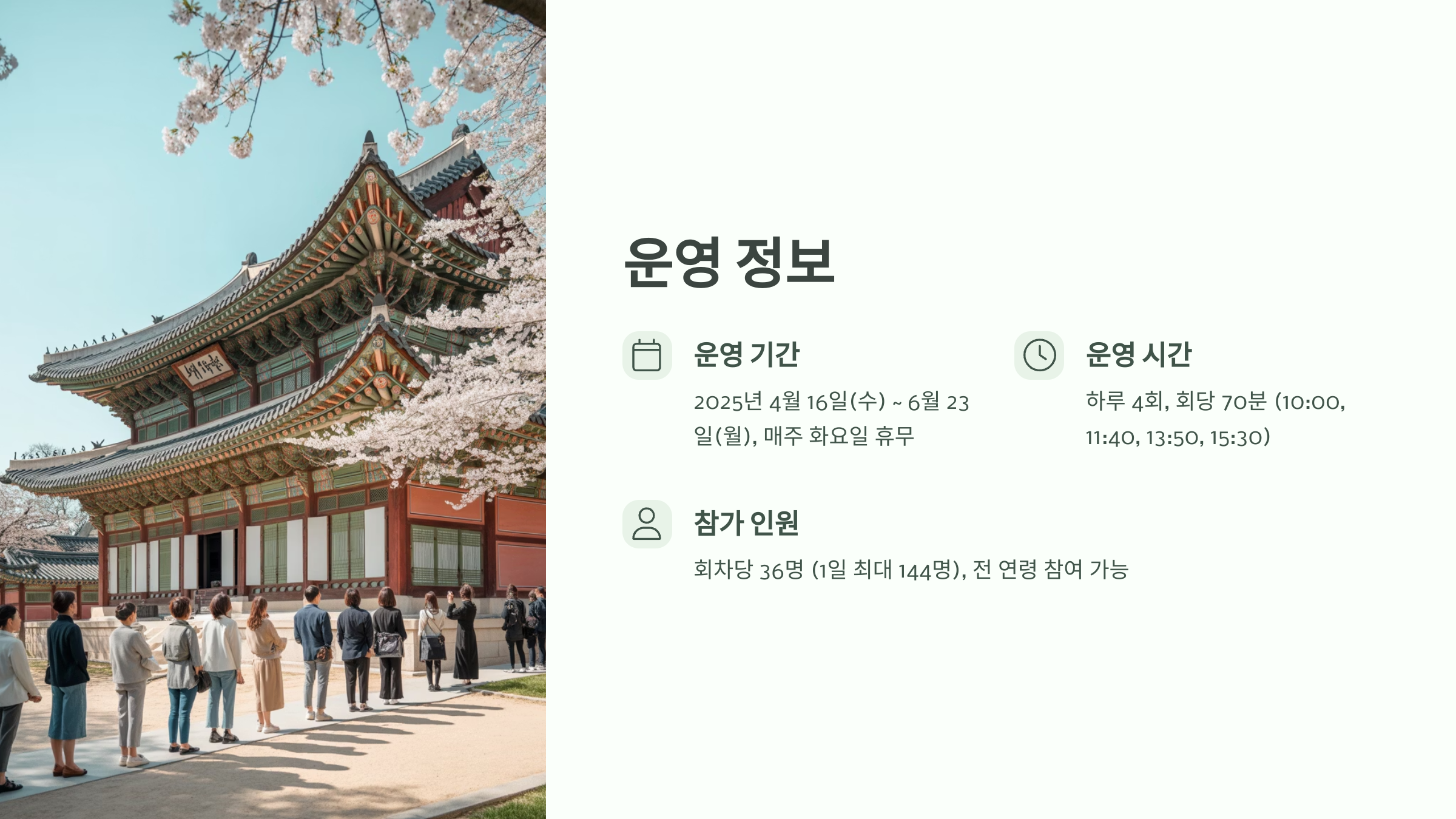 - 외국인 대상 프로그램: 2025년 4월 30일~5월 4일 영어 진행 예정