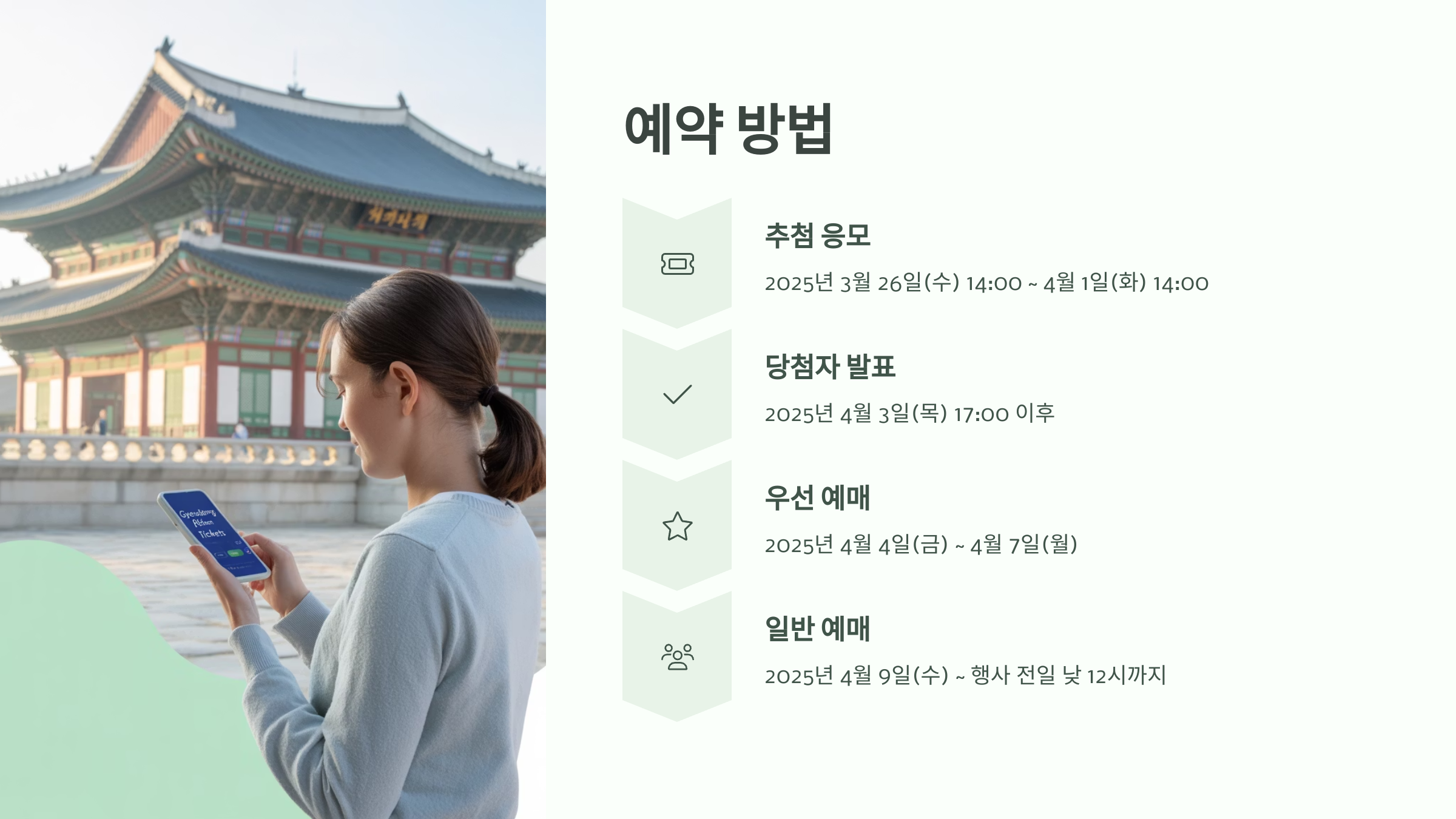 | 일반 예매 | 2025년 4월 9일(수) ~ 행사 전일 낮 12시까지 |