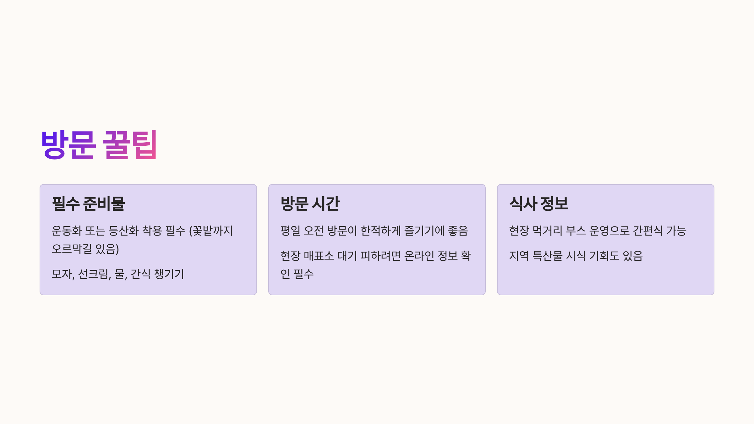 - ※ 날씨 따라 변동 있으니 방문 전 공식 홈페이지 확인은 필수